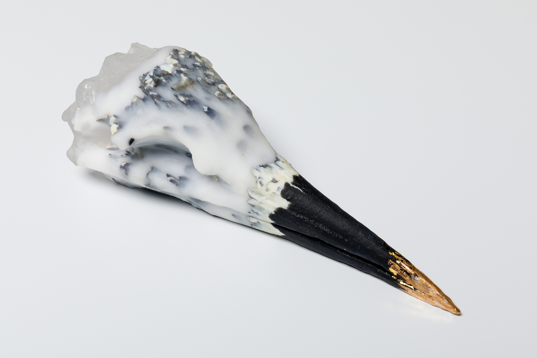 “The three bird skulls are made of layers of glass in different colours, with gold on the beaks. In 2023, I spent a month in Lybster in the north of Scotland on a residency at North Lands Glass, and that’s where my interest in shoreline discoveries began.