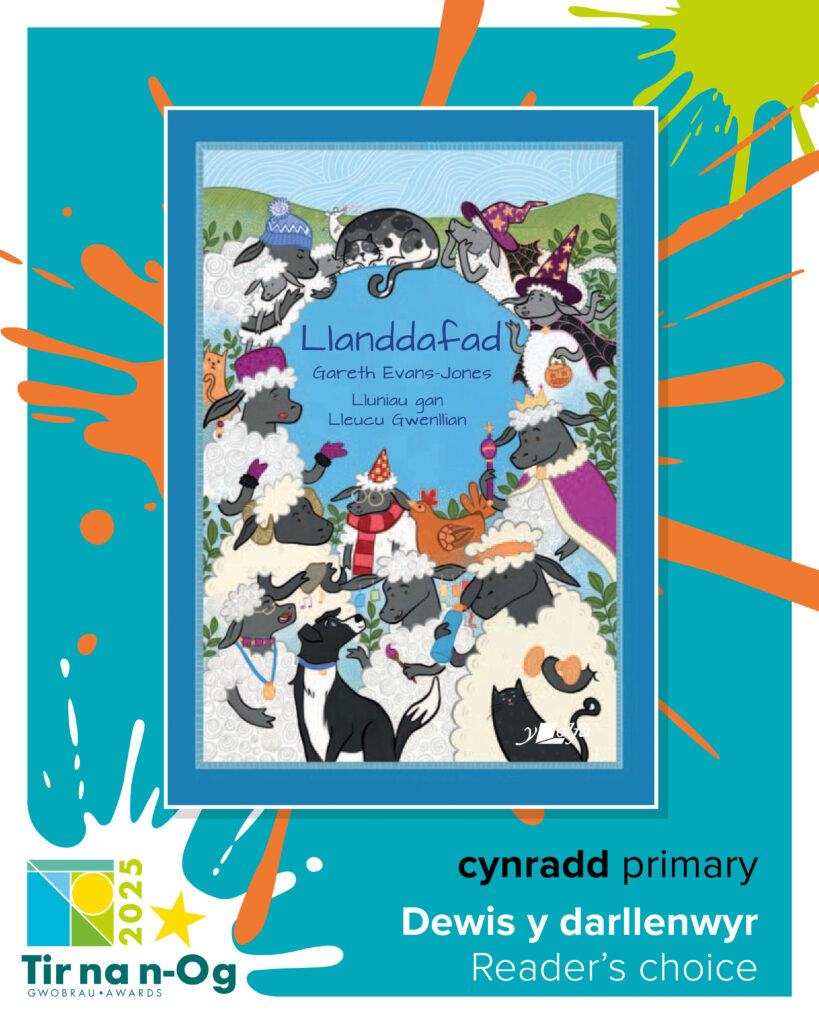 The winner of the Welsh-language primary category Readers’ Choice Award is Llanddafad by Gareth Evans-Jones, illustrated by Lleucu Gwenllian (Y Lolfa)