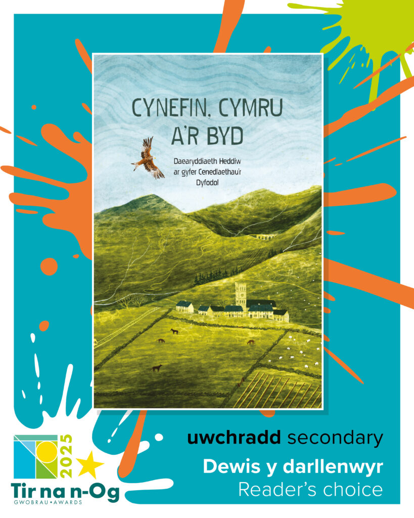 The winner of the Welsh-language secondary category Readers’ Choice Award is Cynefin, Cymru a’r Byd by Dafydd Watcyn Williams (Gwasg Carreg Gwalch)
