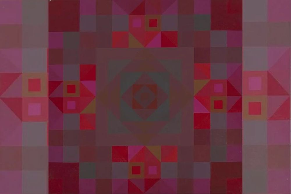 The artist’s textile work is also of great interest, where she experimented with batik and macramé techniques and created calico quilts.