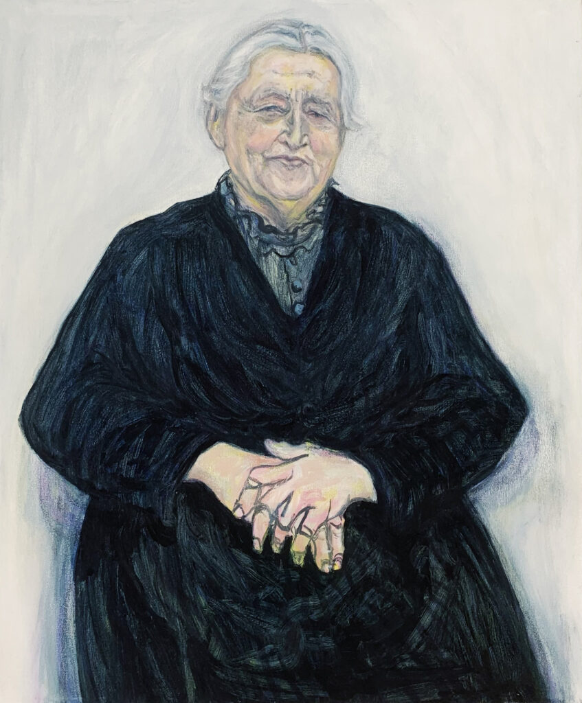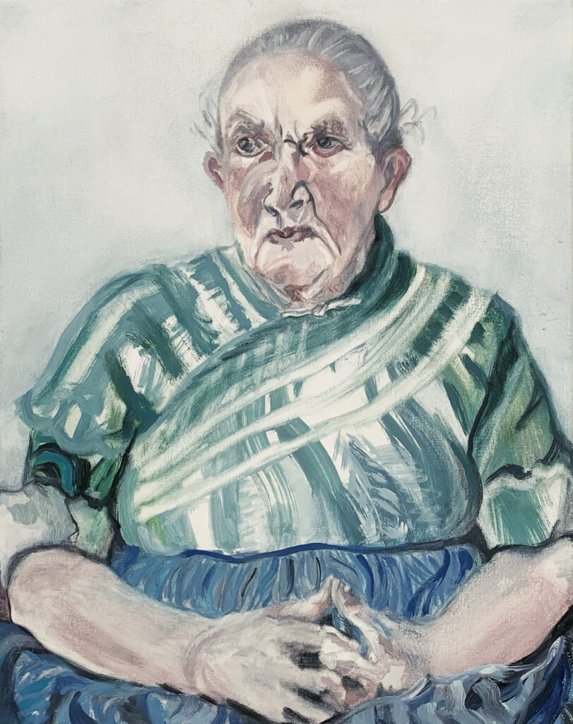 One of the successess of this body of work is the tremendous tenderness, humour and love shown to the sitters – as if representing all the elderly women who made a quiet impact on the generations who followed.