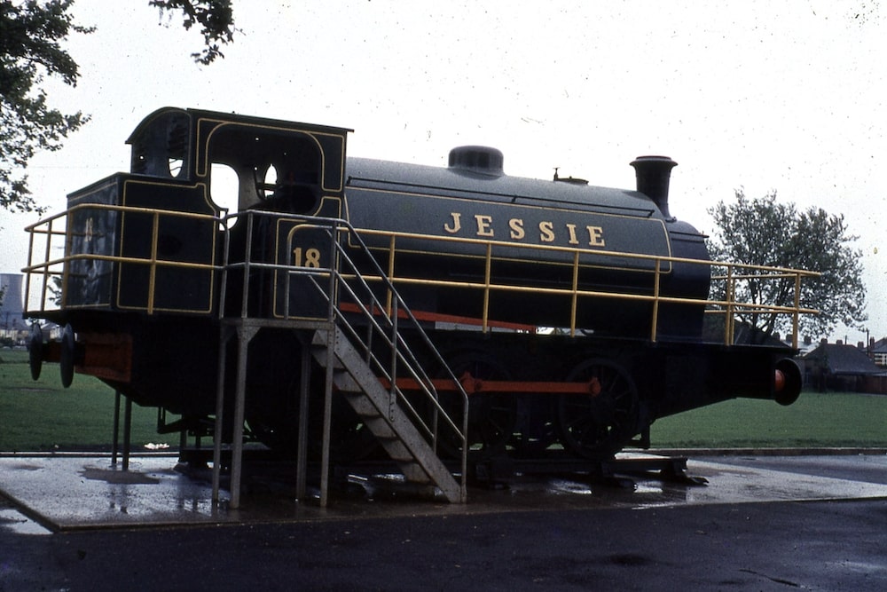 Upon withdrawal, Jessie was cosmetically restored and presented to the Cardiff Council, which decided to place it in Splott Park, not far from the steelworks, where there was already an adventure corner with a tarmac roller and a lorry. Jessie’s chimney stack and furnace were sealed to prevent children climbing in and getting trapped inside. The presentation, by the managing director of the Guest Keen Iron and Steel Company (as the steelworks was then known), took place in January 1965.