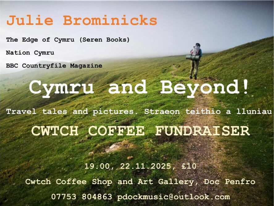 Cymru and Beyond takes place at Cwtch Coffee, Pembroke Dock at 7pm on 22 November. Call 07753804863 or email [email protected] to secure a seat.
