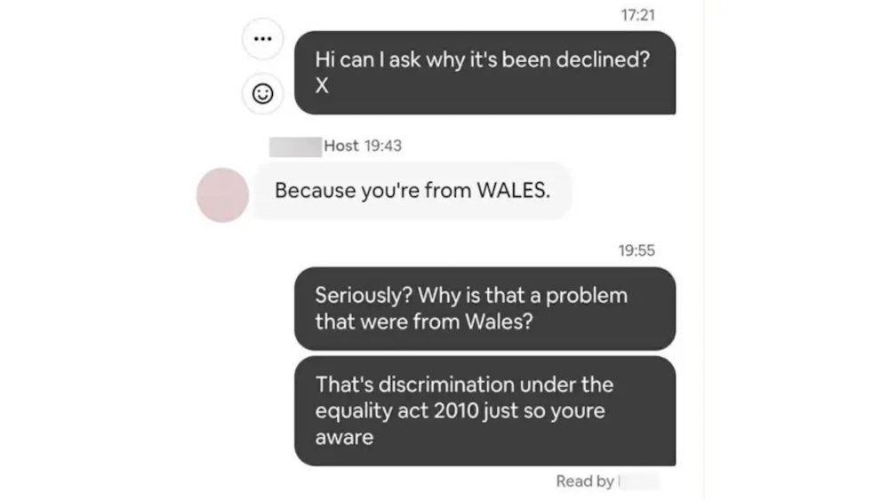 Guests who were rejected by the host of an Airbnb have hit back after being told their booking had been rejected because they’re from Wales.