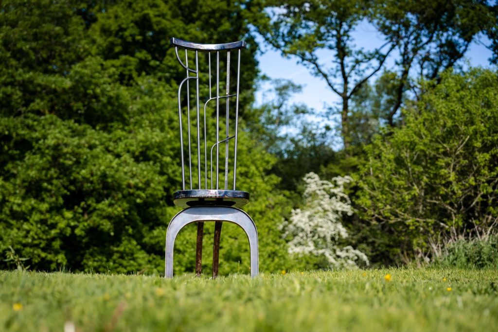 The chair is inspired by the local steel works and industry, and a combination of the Welsh steel and flat steel produced in Port Talbot was used to create it. Angharad was given a guided tour of the Tata Steel site and saw parts that were not visible from the main road, such as countless pipes, and these parts can be seen on the finished chair.
