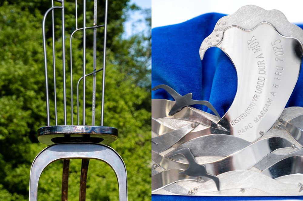 Some of the final pieces of steel from Tata Steel’s works were used in the designs of the two prizes, paying tribute to the local industrial heritage of this year’s Eisteddfod yr Urdd, which will be held at Margam Park, Port Talbot.