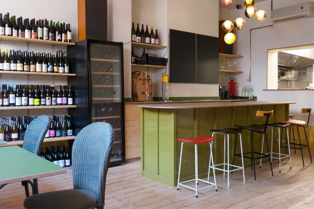 The restaurant also includes a natural wine shop offering unfiltered and additive-free wines. Visitors can buy wine by the glass, take bottles away, or refill reusable containers with an in-house capping machine.