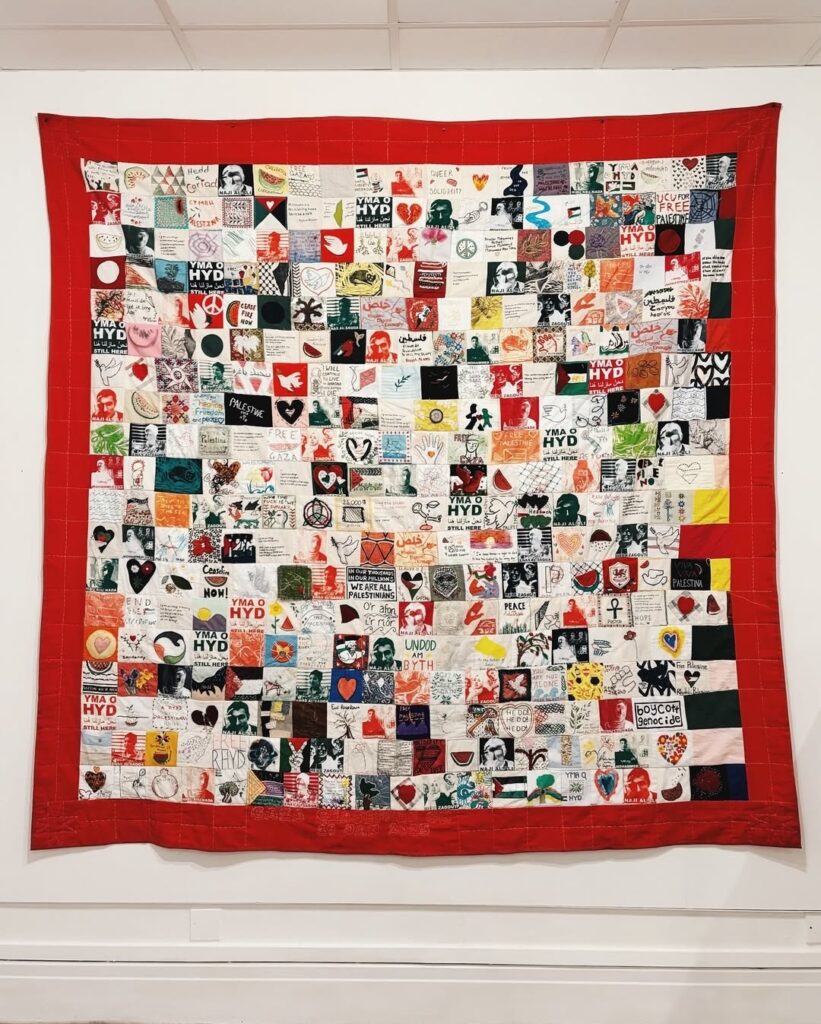 The star of this exhibition is the Wales-Palestine solidarity quilt, previously exhibited at Penarth Chapel as part of the ‘Gwneud’ exhibition.
