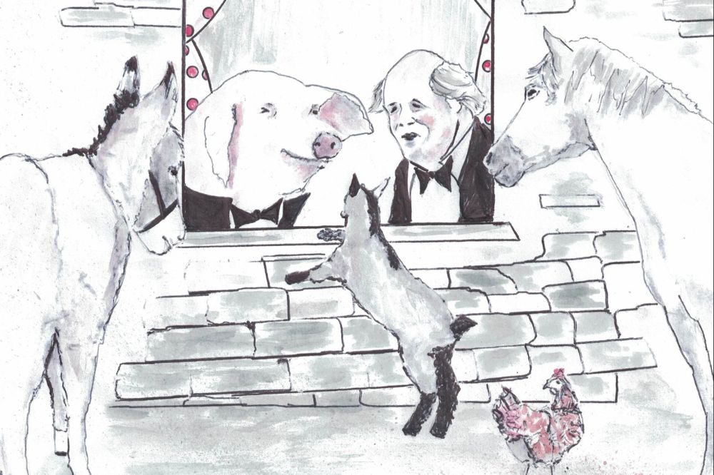“I had a lot of fun deciding on suitably Welsh names for the animals! Foel yr Anfifeiliaid – foel means ‘bare hill’ and is a common element in farm names – felt like a more natural take on ‘Animal Farm’ than a more literal translation would have been.”