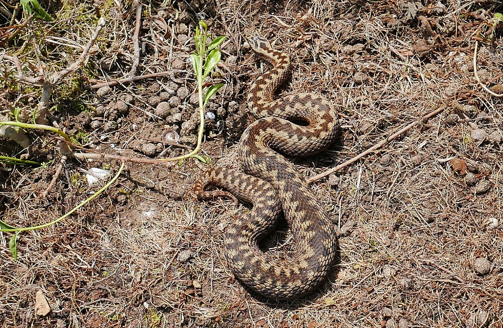 My second thought, which follows the first almost instantaneously – as I lean closer to get a better look – is that this is not in fact an empty snakeskin at all. But an actual real life, fully formed, very much still intact venomous snake. A female adder.