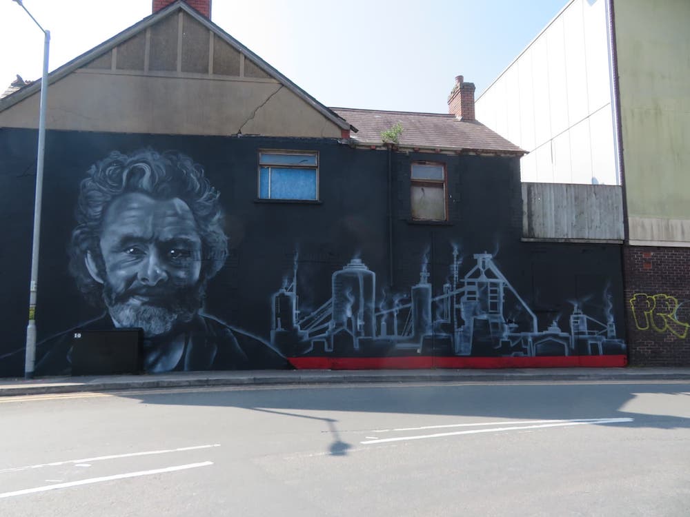 As well as the mural of the actor, it also include a panoramic painting of the town’s famous steelworks.