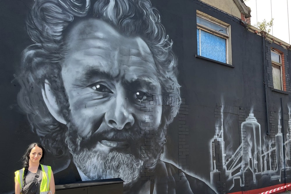 The mural of the famous Port Talbot native, painted by female street art star @hazard0ne (Harriet Wood) is part of the town’s plans to bounce back from the loss of Banksy’s ‘Season’s Greeting’ artwork.