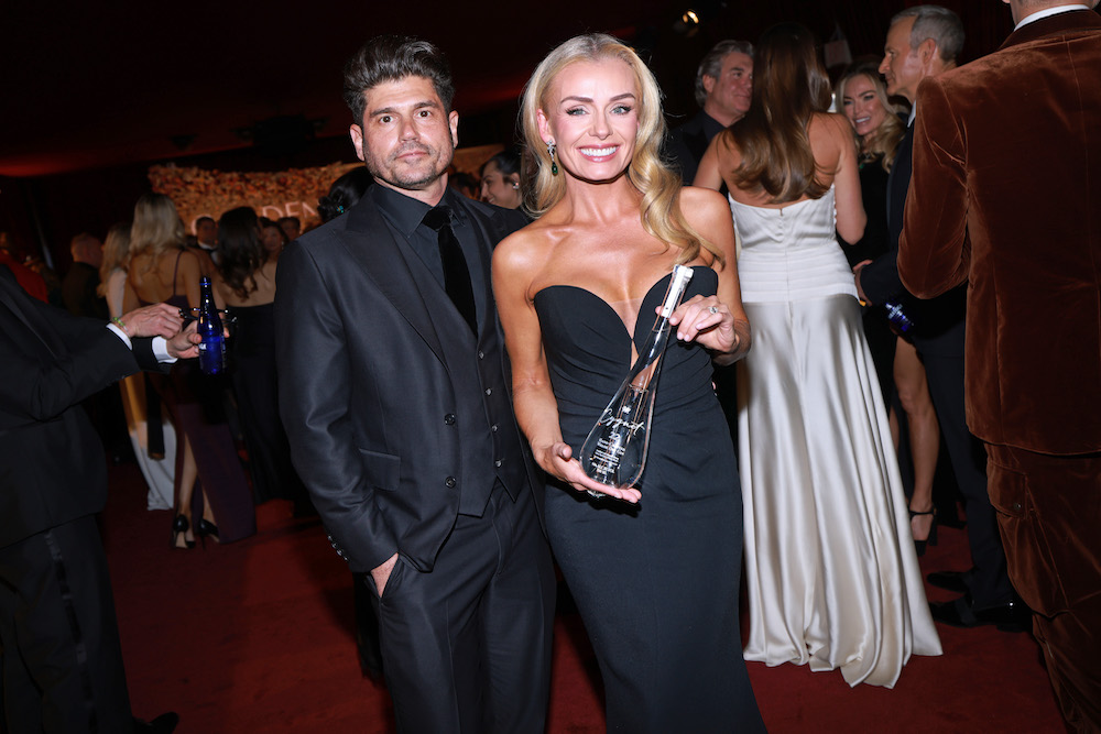 Katherine Jenkins hits Golden Globes red carpet with a bottle of gin