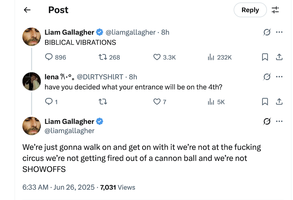 Anyone who follows Oasis frontman Liam Gallagher on X (Twitter in old money) will know that he loves to chat to his fans.