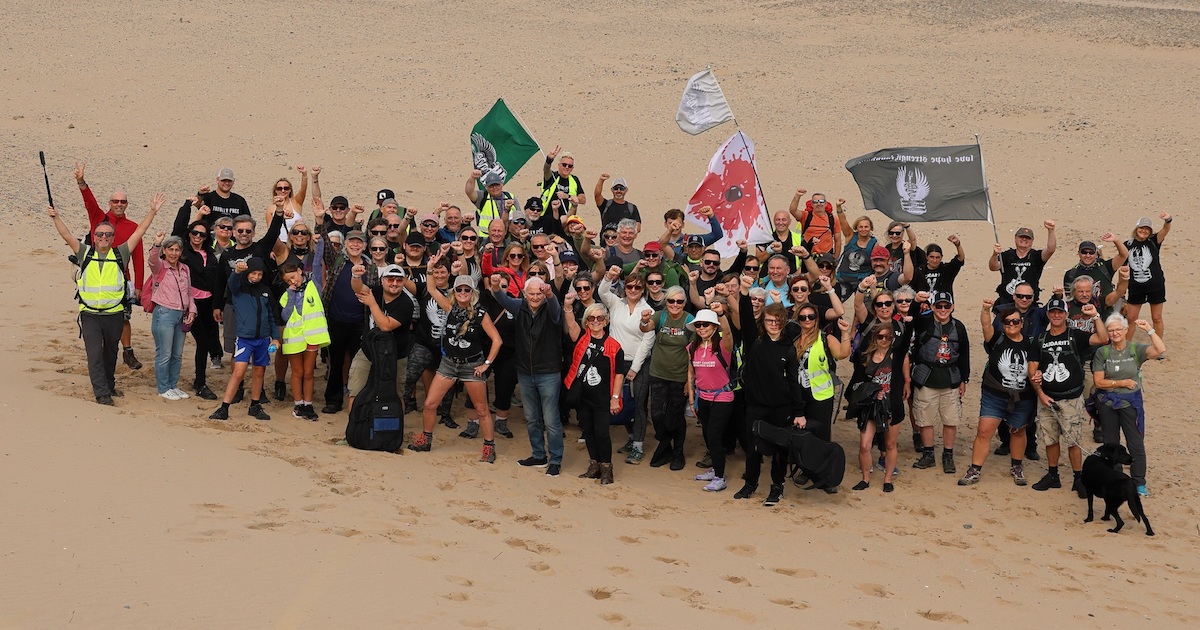As part of the ‘Red Rocks’ Solidarity Rock’n Roll Stroll weekend, the group walked 10 miles from Talacre beach near Prestatyn to the ‘Metal Mikey’ statue of Mike Peters on Rhyl promenade.