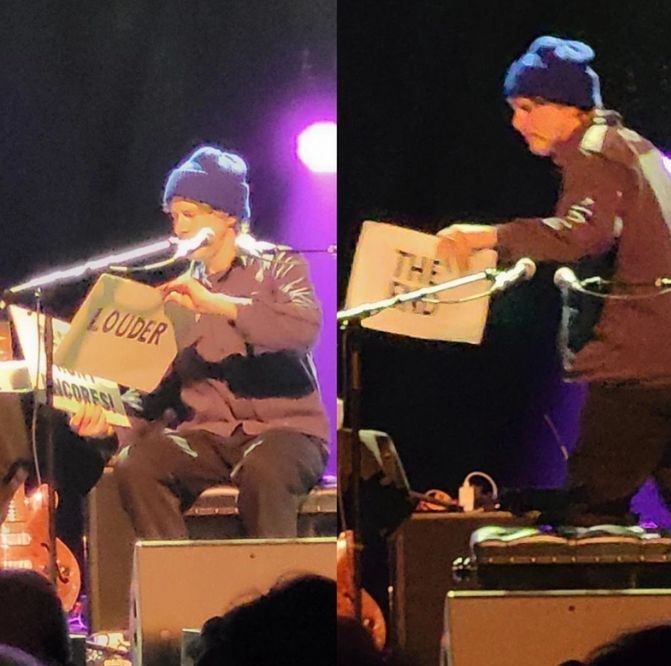 Penultimately came the ever-brilliant Gruff Rhys who sang songs from both his new album ‘Dim Probs’, and old classics such as ‘Gyrru Gyrru Gyrru’. His set was underscored by the sound of birds chirping, which pleasantly changed the atmosphere to a more serene soundscape. One of my personal favourites from “Dim Probs” is “Pan Ddaw’r Haul i Fore.” Rhys uses simple melodies, and satisfying rhyming (such as“orfoledd ystwyth” with “chynhesrwydd tylwyth”) to sing about the sun coming up in the morning. I always feel so hopeful when I hear this song, and so to hear it reverberate through the Glasgow Royal Concert Hall was utterly wonderful. He ended his set by hilariously pulling out cue cards for applause, fittingly the last one simply said “The End.”