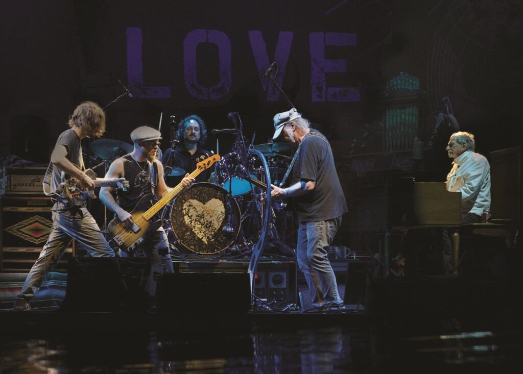 With his band, The Chrome Hearts – Spooner Oldham (Farfisa organ), Micah Nelson (guitar and vocal), Corey McCormick (bass and vocal), Anthony LoGerfo (drums) – Neil Young (guitar and vocal) is bringing his music and songs, new and old, to Cardiff.