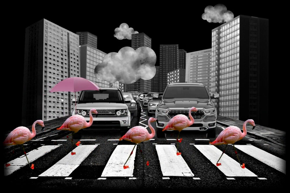 It is a darkly comic tale of an apocalypse in which nature reclaims its beauty and abundance. Instead of human destruction and depletion, plants and animals rebel against extinction, disrupting everyday life with colour.