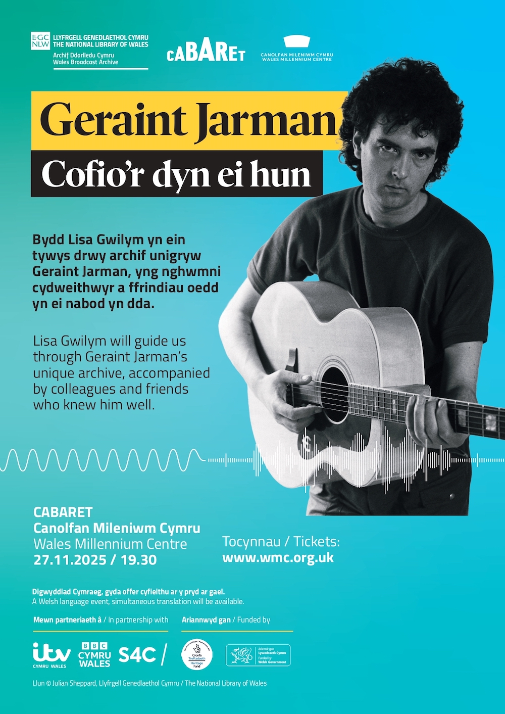 The National Library of Wales, in partnership with the Wales Broadcast Archive, will host a special event celebrating the life and legacy of Geraint Jarman.