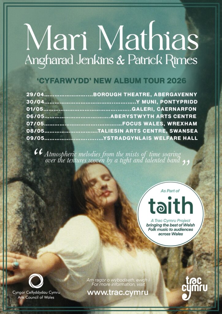 The first tour of 7 venues is with Mari Mathias and her band as the headline act, launching her new album ‘Cyfarwydd’, with support by Angharad Jenkins and Patrick Rimes.