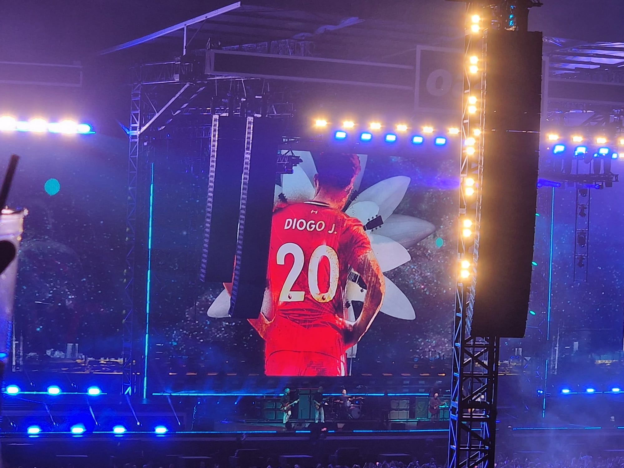 During the final bars of Live Forever a picture of Diogo Jota, the Liverpool footballer who died in a car accident on Thursday, was displayed, with the crowd cheering and applauding the gesture.