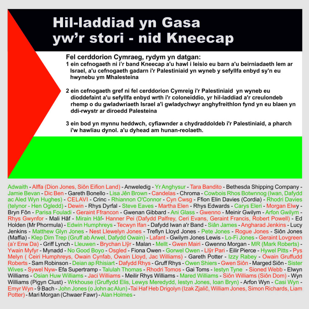 “A number of well-known English bands have already stated their support for Kneecap and it is important that we convey a similar message from Wales.