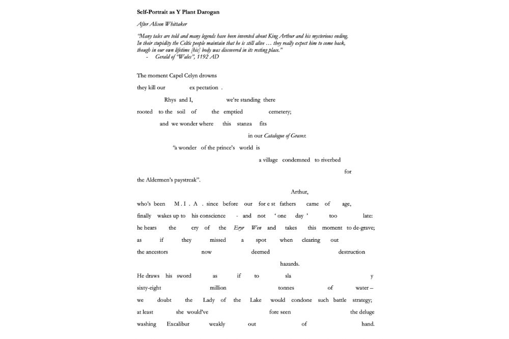 I’m sharing ‘Self-Portrait as Y Plant Darogan’, which is kind of the heart and soul of my pamphlet [ac]quiesonce. I wanted to use the idea of Arthur coming back in our darkest hour. This poem was published in the Australian journal Voiceworks, but not in Cymru, so I’d like to take this opportunity to share it with its intended audience!