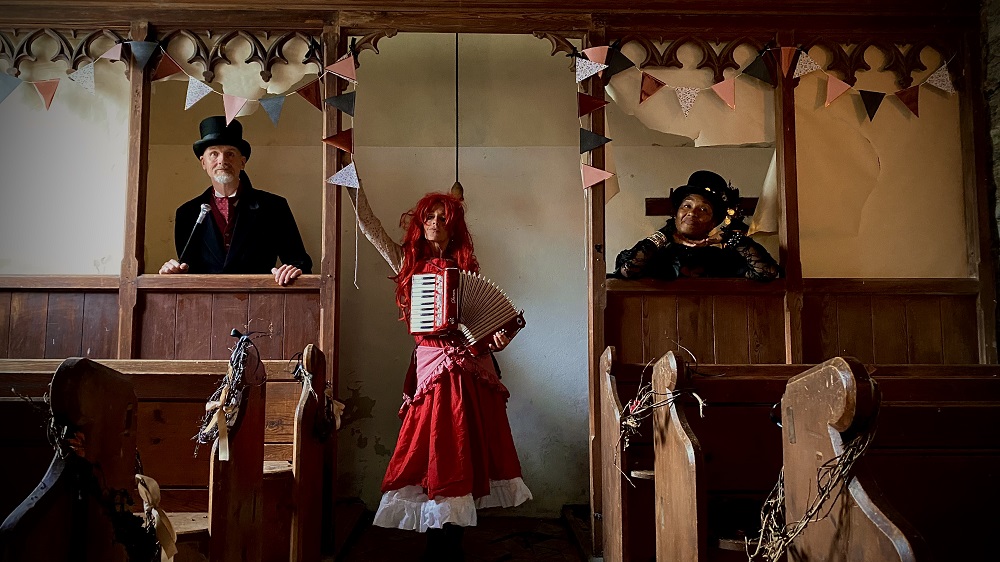 A change of tone comes with a jaunty song-section called ‘In The Air’ telling the story of how Guglielmo Marconi came to transmit his message connecting a small island in the Bristol Channel with the mainland at Lavernock in the first place, the performers spiritedly belting out something that sounds like Italian café music, complete with sprightly accordion accompaniment.
