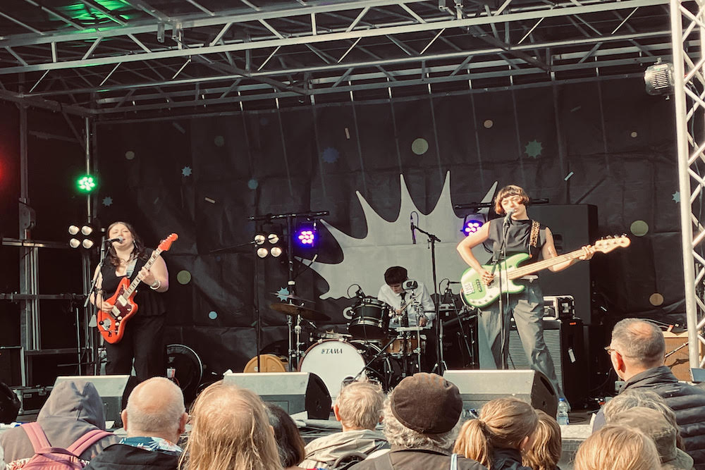 Adwaith also from Carmarthenshire have had an impressive few years, from winning the Welsh Music Prize, to being BBC 6 Music playlisted and supporting Manic Street Preachers on their UK tour. They go from strength to strength and it’s clear the years on the road and performing on big stages has had an effect. They prowl the stage like a pack of caged tigers and quite simply own it. Whipping the crowd up to great applause. But musically they have really upped their game and their excellent new track MWY demonstrates the ambition they are showing to their ever evolving sound.