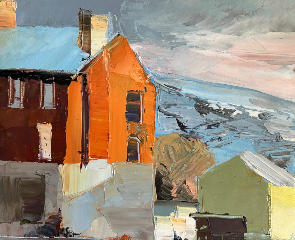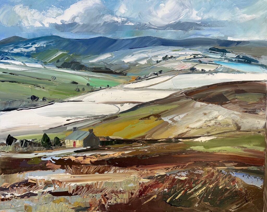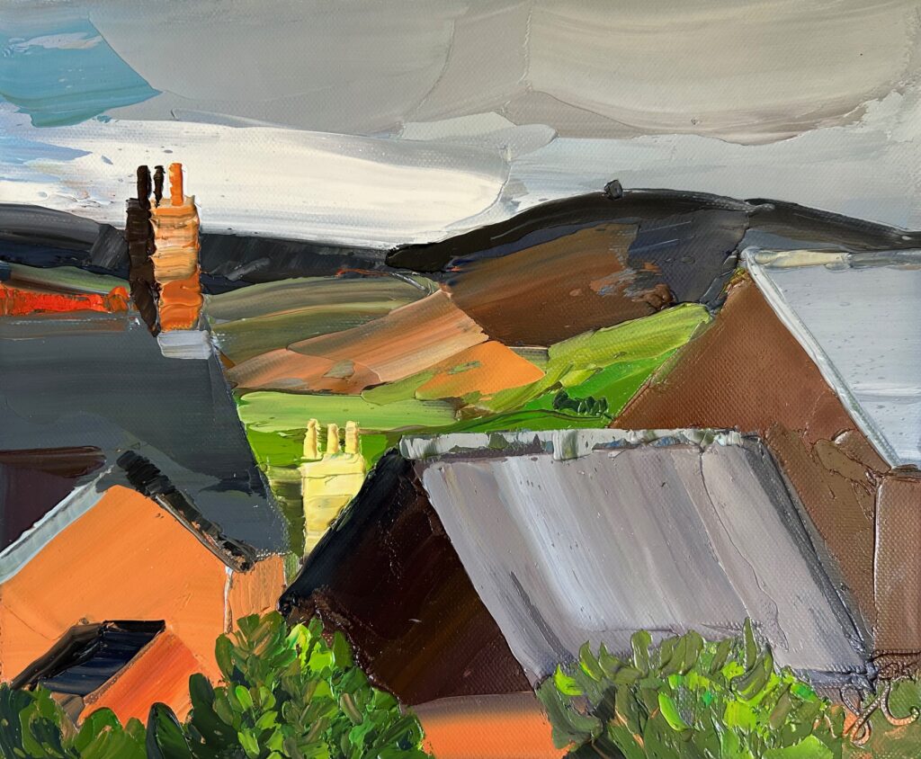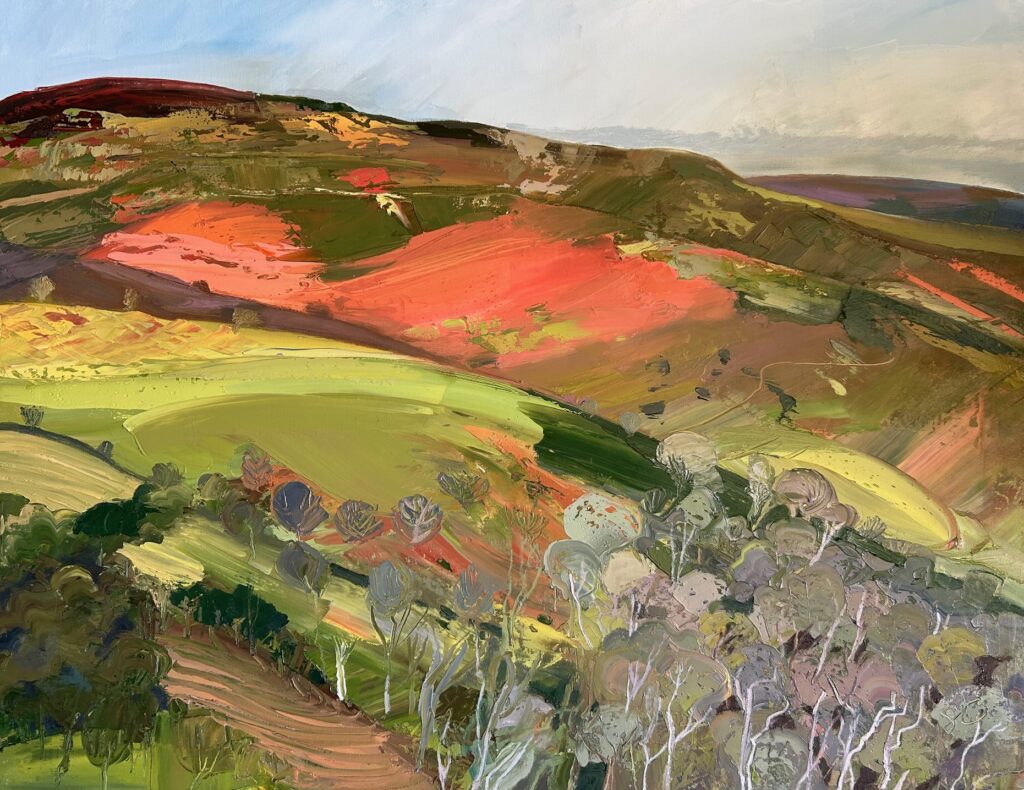 Inspirations are very varied in Sarah’s latest pieces. She shared: “I often paint the landscape around me here in the Vale Of Clwyd. The light is always the in inspiration whatever the season.