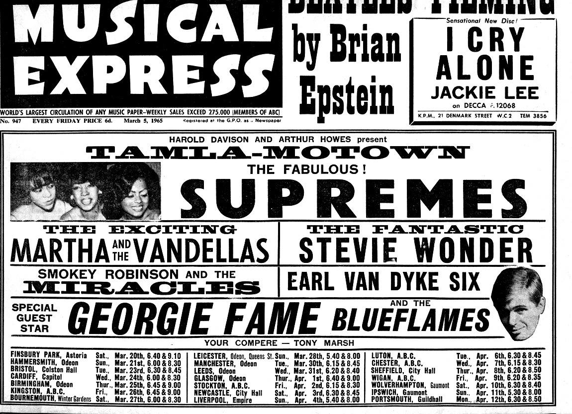 My memories of the show are limited, but I remember Steve Wonder in a shiny suit being led on stage. I think The Supremes had sparkly dresses which reflected in the lights. Georgie Fame playing a large electric organ, the smell of the cushioned seating and feeling very excited. I lived 20 miles away and at 14 I was very adventurous!