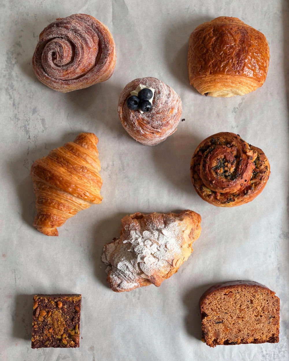 There are sourdough loaves and buttery, flaky croissants that require a three-day process of mixing, lamination, and shaping, while sausage rolls, swirling cinnamon buns, and leek and potato pasties are standouts with customers.
