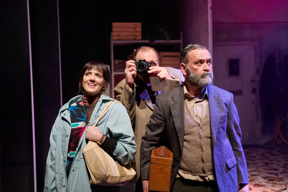 In addition, the work of Set and Costume Designer Elin Steele in taking the audience back in time and immersing us in that period, such as the vintage furniture and landline telephones, to the previously mentioned smoke damaged surroundings, indicating Huw’s smoking habit and the hanging teabags, leaving us in no doubt that our protagonist is incredibly frugal!