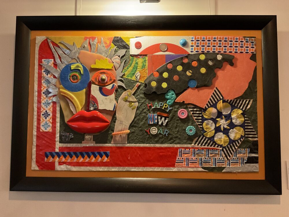 I’ve mentioned my upbringing. My parents and grandparents were opportunistic foragers. So I grew up with the habit of “looking,” of having my eyes open. I spent a lot of time in my 20’s and 30’s mudlarking on the banks of the Thames. Once you got your “eye in” that could be very rewarding. So going out looking for whatever we could use was how I was brought up which became looking for goodies when detecting or mudlarking so my current looking for matériels is just a development of that. I like using colour in my work and that leads to it being quite busy or intense. It’s quite a Marmite sort of thing. Because my work is quite strong (colourful and graphic ) it’s not to everyone’s taste. I get that but am happy doing what I dp and won’t be changing any time soon.