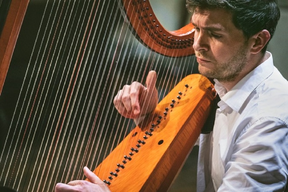 Appearing at Gregynog on Saturday, 25 June, is Maximilian Ehrhardt, who is based in Berlin and specialises in playing historic harps including the Welsh triple harp.