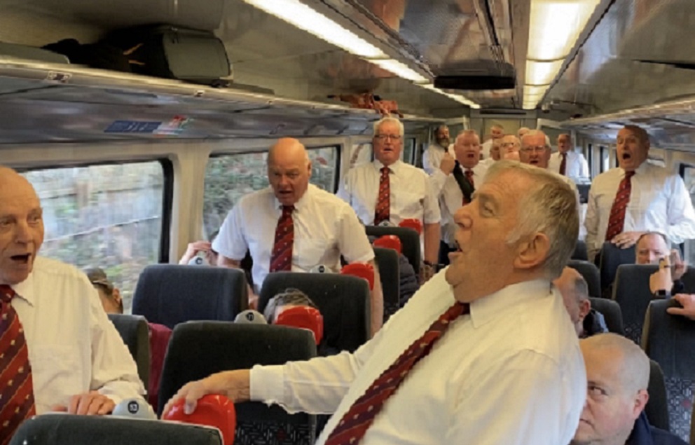 Over 20 members of Tonna Male Voice Choir jumped on the train at their local station in Neath.