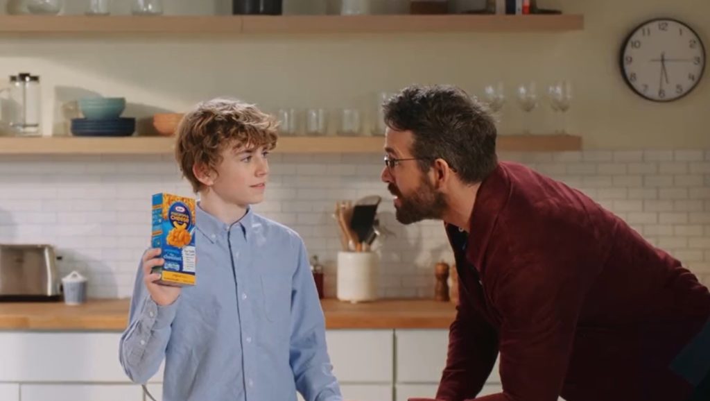 The ad, for Kraft Mac & Cheese, features an angelic-looking yet foul-mouthed Walker Scobell alongside the Deadpool star.