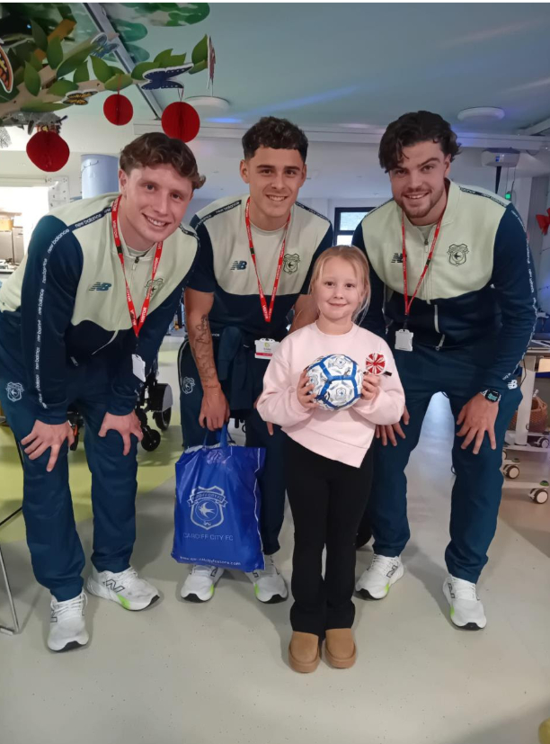 Their visit was followed by Cardiff City stars Alex Robertson, Will Fish, and Ollie Tanner, who also spent the visit chatting with the families and exchanging gifts.