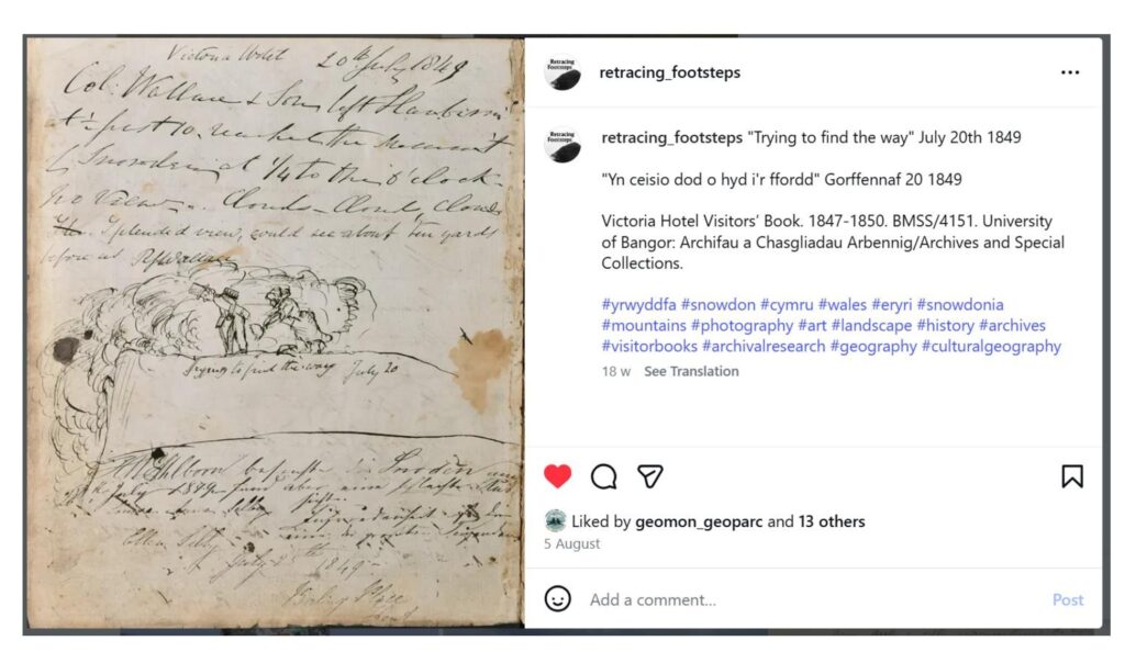 I had no idea! I’ve not seen it. But for months I’ve been following excellently curated Retracing Footsteps (Olrhain Olion) posts on Instagram. Along with an intriguing photograph of a landscape or page from a visitor book, a typical post might read;