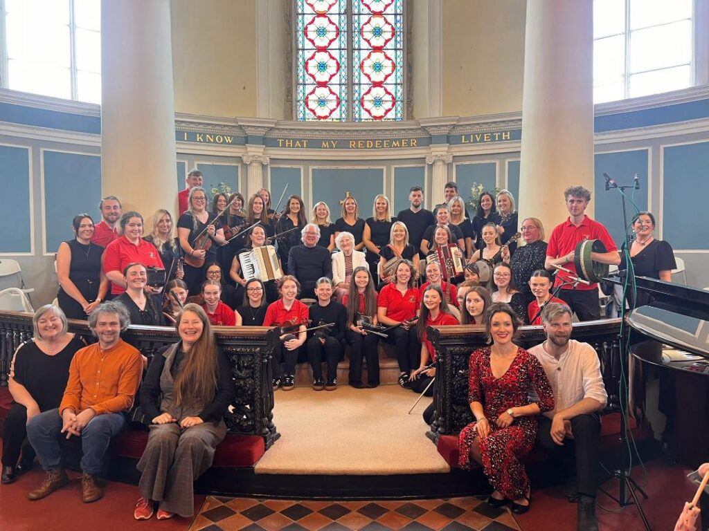 The occasion brought musicians back together, some who hadn’t performed for many a year so for the Simffoni mara Trio to perform alongside 120 Traditional Irish musicians the scene was set for the most memorable of concerts.