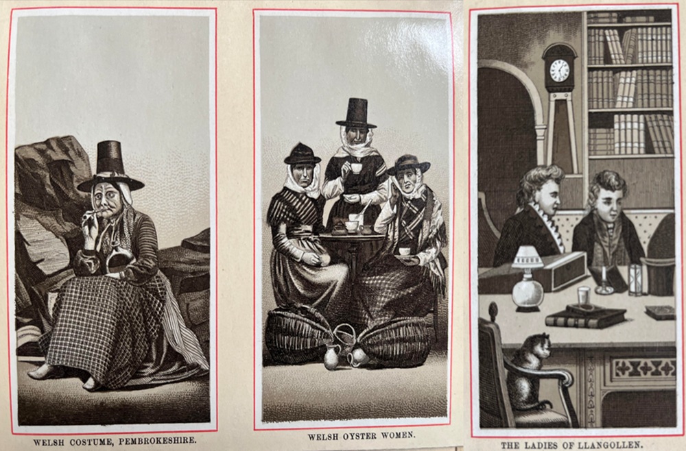 Most are very similar in dress, and included captions such as ‘Welsh Peasantry,’ ‘Welsh pets’ (two children), ‘Welsh Farmers Daughters,’ and ‘Welsh Oyster Women.’