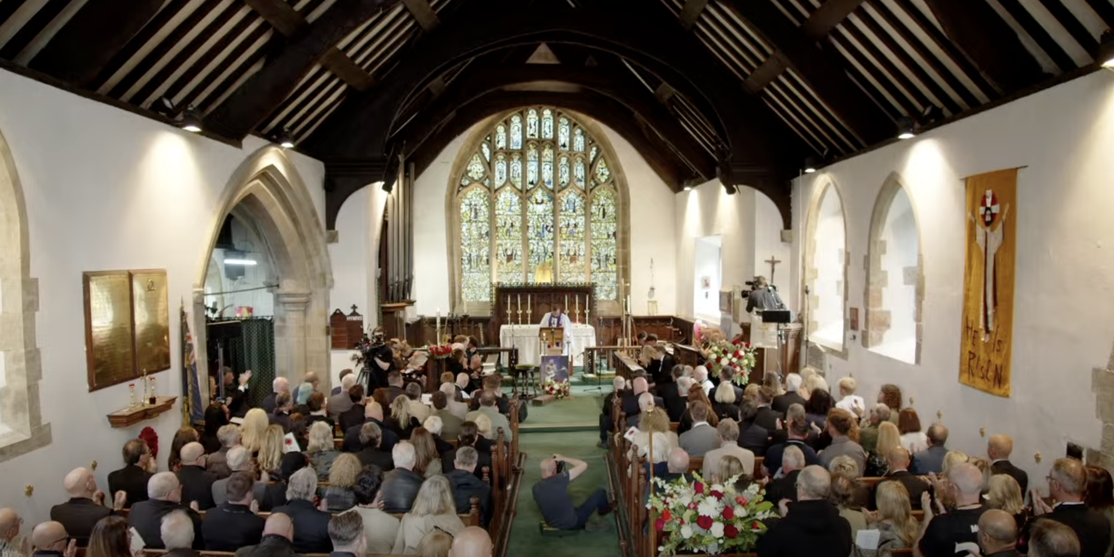 By mid-afternoon, when the service itself began, the ‘congregation’, the gathering was packed together many scores deep, filling the road outside the church, a wall of love, hope and strength to sustain Jules and their two sons, Dylan and Evan, as they accompanied the casket containing Mike’s ashes into the sanctuary.