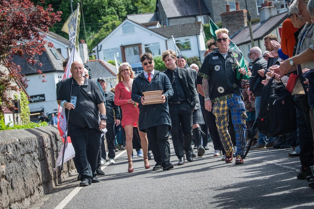 Decked out in leather, camo jackets, Alarm T-shirts and logos, with some even in more sombre garb, the crowds began gathering from early morning in an atmosphere as much rock festival as funeral.
