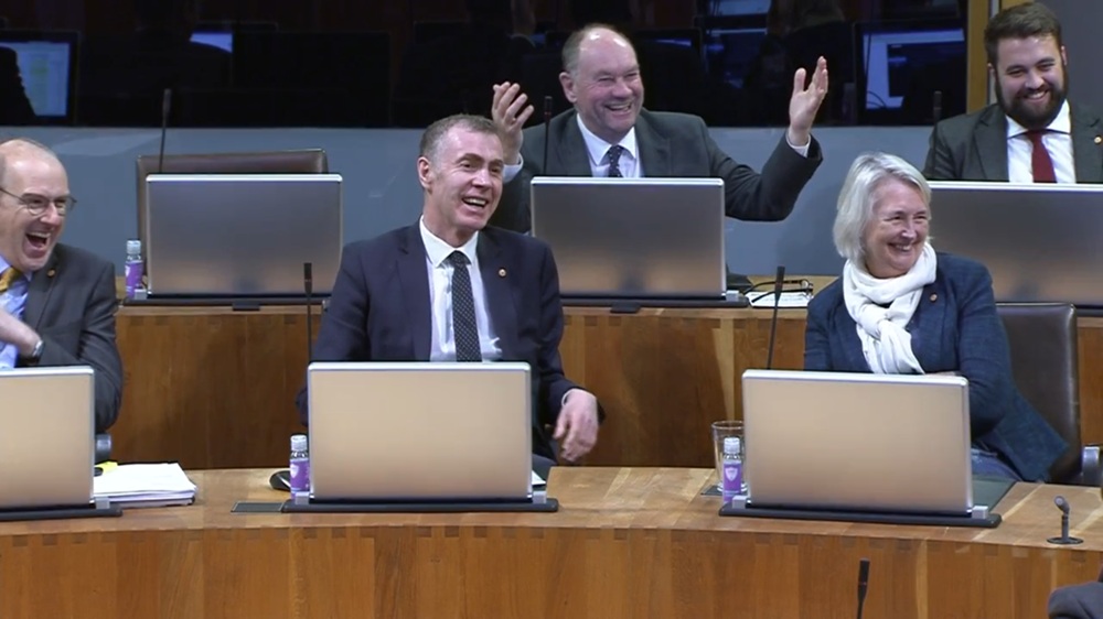 “Last week marked the one-year anniversary of the co-operation agreement, I’m glad to see it’s still so healthy,” he said, prompting laughter around the chamber.