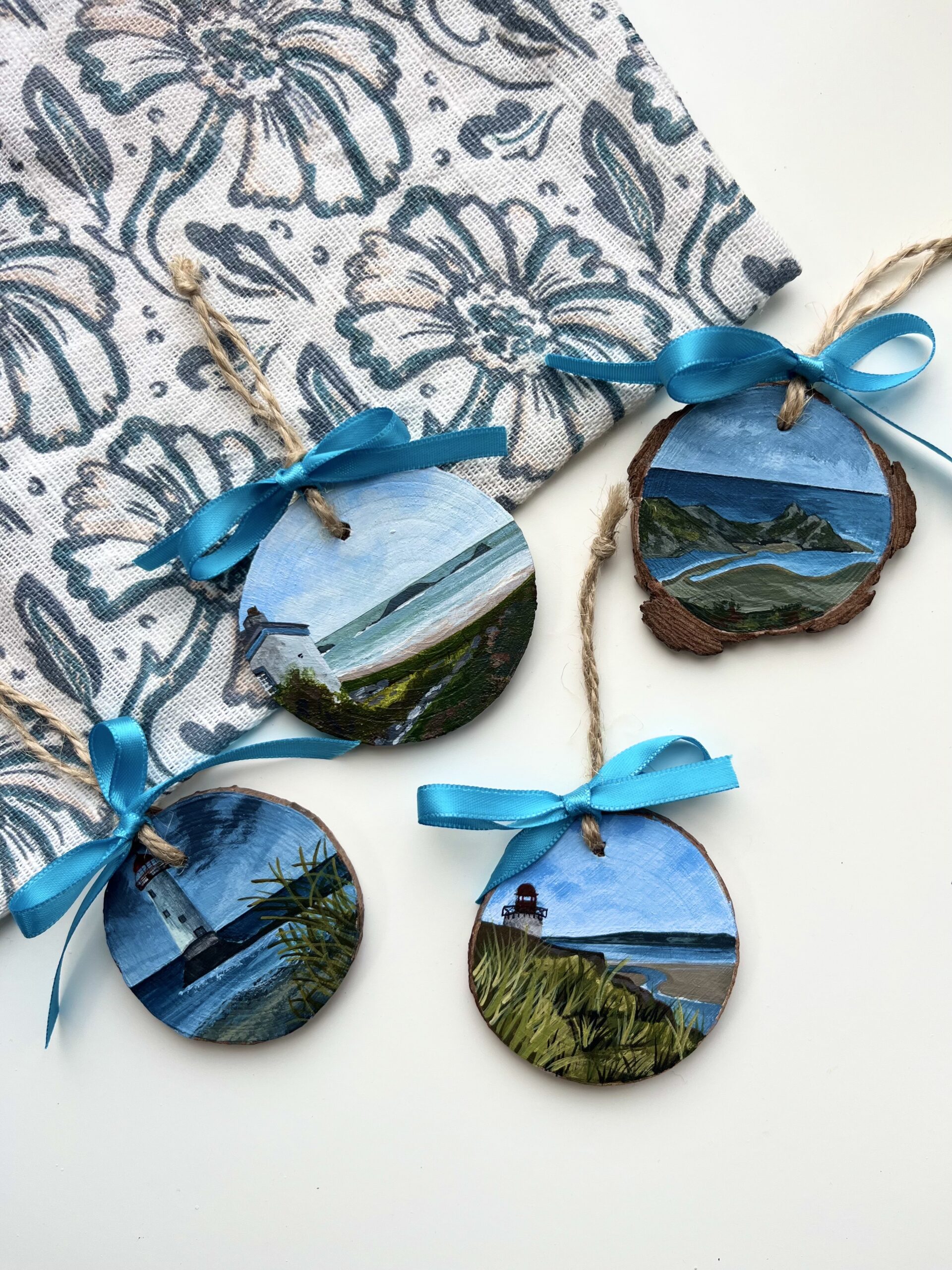 Whilst she now mostly works on Welsh slate, Caitlin still creates custom wood slice paintings which can be commissioned on her website.