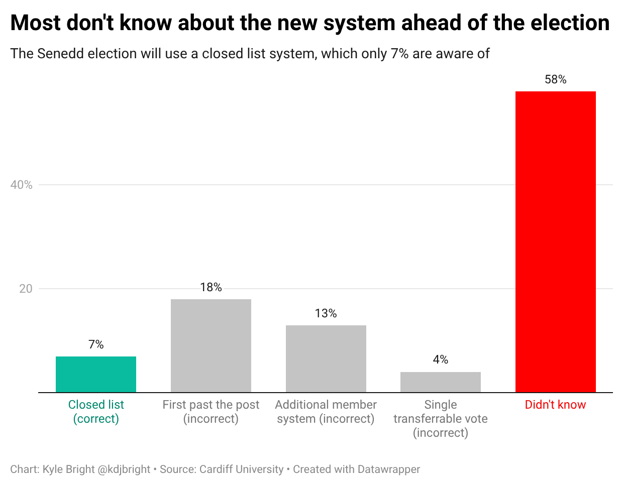 Research by Cardiff University’s School of Journalism, Media and Culture found that there needs to be better clarity over how devolution works in Wales, with 58% of people surveyed for their analysis having no idea what voting system is being used for the election in May.
