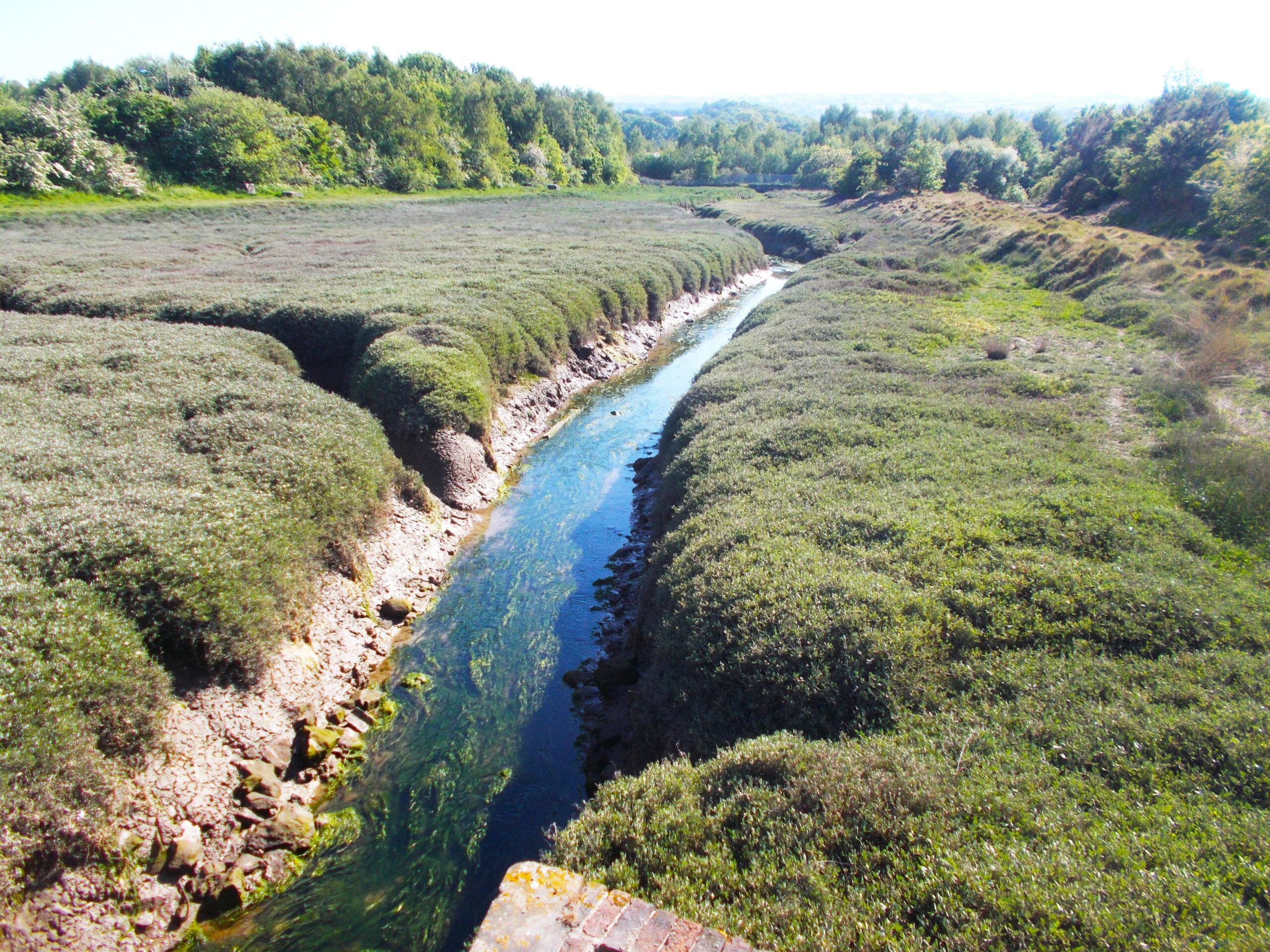 I go down to the dock, across the A548, past the Kingspan factory and D Fur Dog Grooming. Vetch and horsetails sway on the banks and the stream slinks through saltmarsh into silty Aber Dyfrdwy like a freshwater snake.