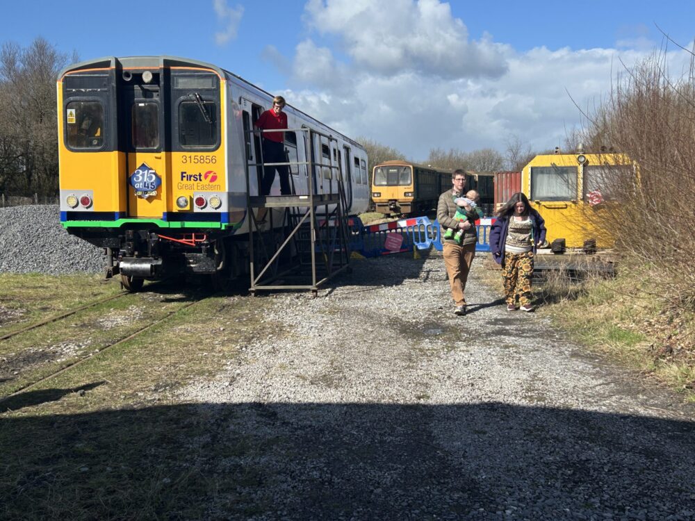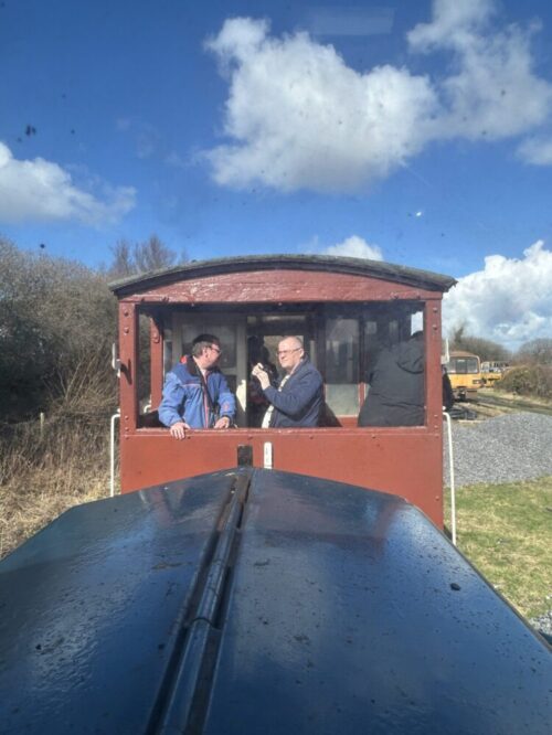 As we progress at a sedate, shunting speed, Mark points out places connected with the area’s coal mining heritage “If you look in the field just over there, there’s two pipes, sticking out from the ground. That’s where the original mine shafts were, they’re the ventilation.”