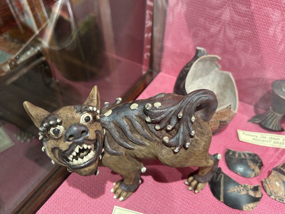 “Collecting” ravens and peregrine falcons on the Orme presumably meant the birds would be shot and stuffed. Club members would also collect specimens and curios on their travels which explains the mythical Chinese dogs and turtles which sit in the cases alongside pinned local butterflies and desiccated beetles.