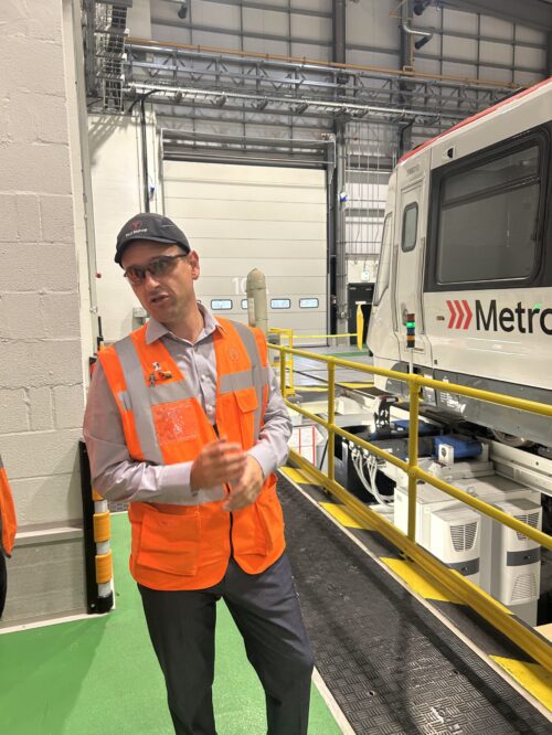 Tim Gibbs combines roles as a maintenance tech and train driver, although he doesn’t travel very far in the cab. ‘We just drive on the depot. We don’t drive mainline. We also do the general day-to-day fixing and servicing of the trains.’ Tim is aware that they haven’t amassed the full fleet as yet but sees them being delivered quite regularly, so believes they should reach the full complement of 36 trains before too long.